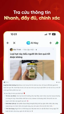 Điểm khác biệt then chốt của AI Hay nằm ở tính minh bạch và độ tin cậy vượt trội. Mọi câu trả lời bạn nhận được từ AI Hay đều được trích dẫn nguồn rõ ràng, giúp bạn dễ dàng kiểm chứng và củng cố niềm tin vào thông tin. Ứng dụng còn khuyến khích bạn đào sâu vào bất kỳ chủ đề nào bằng cách duy trì mạch đối thoại liên tục và đưa ra các gợi ý câu hỏi thông minh tiếp theo. Đặc biệt, bạn có thể kết nối với cộng đồng Hỏi Hay sôi động, cùng trao đổi kiến thức, khám phá những góc nhìn mới lạ và học hỏi từ những câu hỏi thú vị mà mọi người cùng chia sẻ.