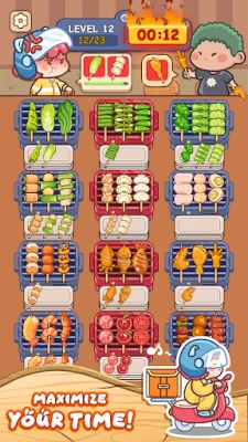 "BBQ Sort: Skewer Match Puzzle" mời bạn vào thế giới nướng BBQ sôi động! Sắp xếp, ghép 3 xiên que giống nhau để dọn sạch vỉ nướng. Trò chơi giải đố match-3 kinh điển với chủ đề ẩm thực hấp dẫn, dễ chơi mà gây nghiện. Thưởng thức đồ họa đáng yêu và thử thách kỹ năng của bạn.