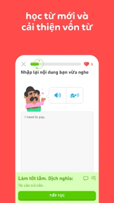 Khám phá thế giới ngôn ngữ với Duolingo, nền tảng được các chuyên gia ngôn ngữ hàng đầu dày công xây dựng và đã chinh phục trái tim của hàng trăm triệu người học khắp hành tinh. Duolingo không chỉ là một ứng dụng; đó là chìa khóa giúp bạn tự tin giao tiếp, dù là chuẩn bị cho chuyến đi mơ ước, nâng tầm sự nghiệp, hay đơn giản là kết nối sâu sắc hơn với những nền văn hóa đa dạng. Từ tiếng Tây Ban Nha, tiếng Pháp, tiếng Hoa cho đến tiếng Anh và vô vàn ngôn ngữ khác, Duolingo mở ra cánh cửa kiến thức theo cách riêng của bạn.