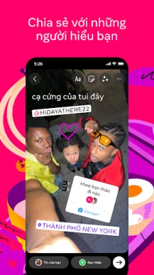 Chia sẻ mọi khoảnh khắc, từ những cập nhật nhanh gọn trong 24 giờ qua với Tin và Ghi chú, đến những câu chuyện sâu sắc hơn cùng nhóm Bạn thân. Lưu giữ kỷ niệm về những sự kiện đáng nhớ hoặc chuyến đi gần đây trên Bảng feed của bạn. Đặc biệt, hãy biến cuộc sống thành những thước phim ngắn đầy cuốn hút với Reels, nơi bạn có thể thỏa sức sáng tạo video và khám phá nội dung giải trí không ngừng. Nâng tầm bài viết của bạn với thư viện mẫu độc quyền, âm nhạc thời thượng, nhãn dán đa dạng và các bộ lọc nghệ thuật, biến mỗi bài đăng thành một tác phẩm cá nhân đầy phong cách.