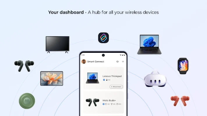 Khám phá Smart Connect, giải pháp tiên phong từ Motorola được thiết kế để xóa nhòa ranh giới giữa các thiết bị kỹ thuật số của bạn. Tưởng tượng một thế giới nơi điện thoại, máy tính bảng và PC của bạn hoạt động như một thể thống nhất, mang lại hiệu quả công việc và trải nghiệm giải trí không giới hạn. Smart Connect biến tầm nhìn đó thành hiện thực, tối ưu hóa mọi tương tác của bạn với công nghệ.